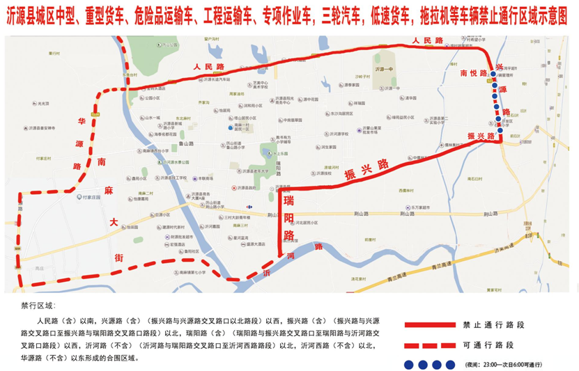 人民路(含)以南,兴源路(含)(振兴路与兴源路交叉路口以北路段)以西,振兴路(含)(振兴路与兴源路交叉路口至振兴路与瑞阳路交叉路口路段)以北,瑞阳路(含)(瑞阳路与振兴路交叉路口至瑞阳路与沂河路交叉路口路段)以西,沂河路(不含)(沂河路与瑞阳路交叉路口至沂河西路路段)以北,沂河西路(不含)以北,华源路(不含)以东形成的合围区域。