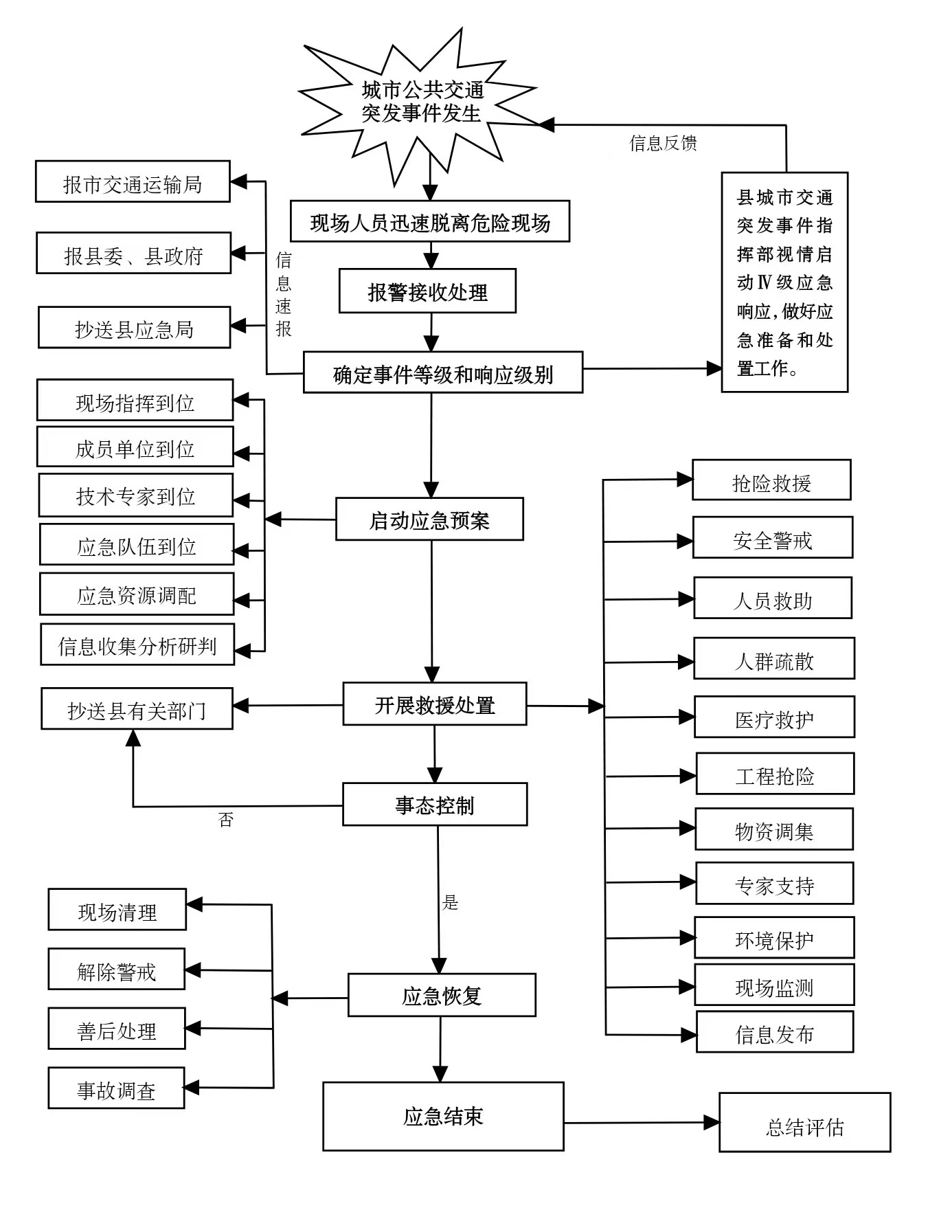发生Ⅰ、Ⅱ、Ⅲ级城市公共交通突发事件时,启动县级应急预案,全力投入先期响应行动,并报告市政府,在国家、省、市应急指挥机构指导下,开展应急处置。