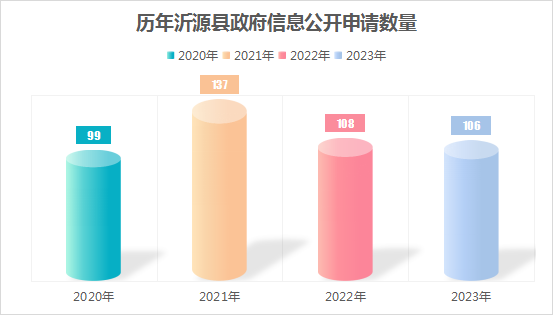 2023年,沂源县严格按照《中华人民共和国政府信息公开条例》相关规定,进一步强化依申请公开办理程序不断提升依申请公开工作水平,共受理政府信息公开申请106件,同比减少1.85%,申请内容主要集中在土地征收、社会保障等领域,全部依法依规予以办理。