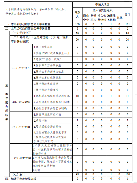 三、收到和处理政府信息公开申请情况