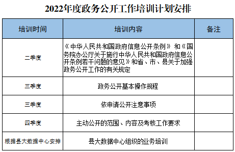 为更好的贯彻执行县政府政务公开工作要求,加强政务公开培训工作,结合我单位实际,特制定2022年度政务公开工作学习培训计划,其内容具体如下: