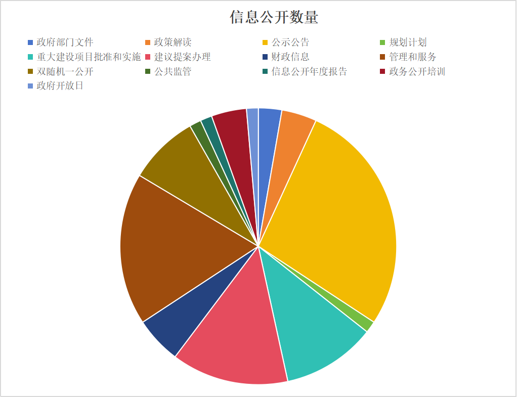 聚焦全县重大项目建设、产业发展规划、价格调控监管、民生政策落实、财政资金使用等关键领域,分类梳理公开事项,细化公开内容。年以来,主动公开政府信息71条,其中政府部门文件1条,政策解读类2条,公示公告类13条,重大决策类3条,规划计划类1条,重大建设项目批准和实施类8条,建议提案办理类9条,财政信息类4条,管理和服务公开类13条,双随机一公开类5条,公共监管类1条,信息公开年度报告1条,政务公开培训3条等。