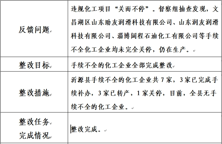 | 标题: | 沂源县工业和信息化局关于对第二轮省生态环境保护督察反馈意见(序号三)办理情况公示 | ||