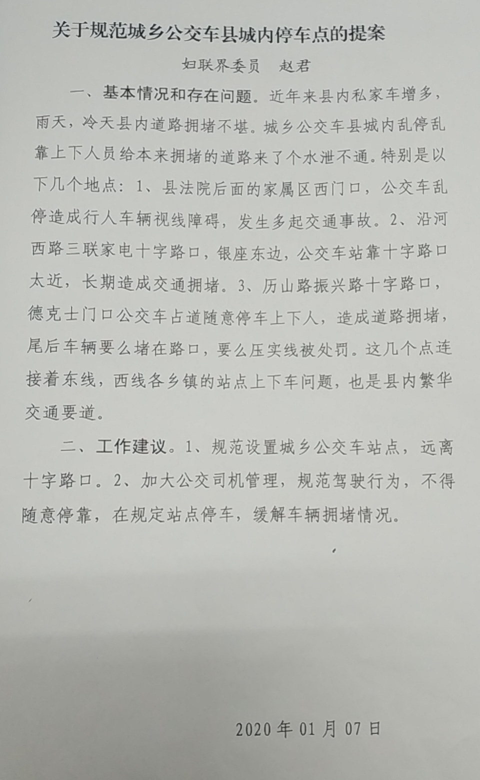 关于城乡公交车县城内交通要道乱停乱靠问题的提案