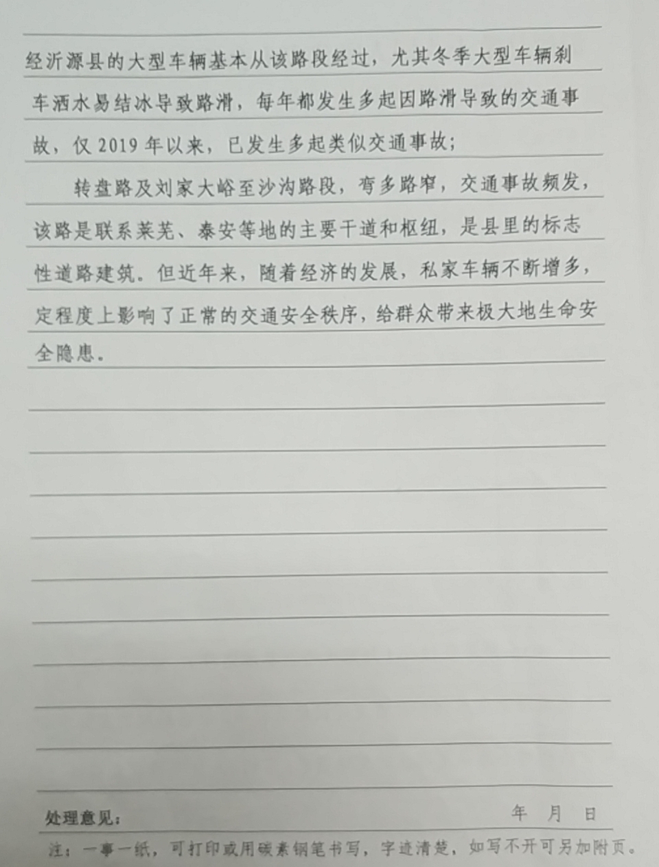 近年来,该路段虽然符合道路规范,满足设计服务水平,但该路段车辆通行集中且复杂,经常发生交通事故。为彻底解决该路通行安全问题,我局积极联系对接公路事业服务中心,已于2017年完成项目建议书,并于2019年将G341黄海线沂源鱼台至沂源钢城界段改建工程纳入《山东省普通国道国土空间控制规划》,初步方案为:刘家大峪至西坡村段在鲁村北另辟新线新建,西坡村至草埠段利用现有道路拓宽改建。设计标准为双向四车道,一级公路。该项目实施后,将改善刘家大峪至草埠段交通状况,提高通行能力。