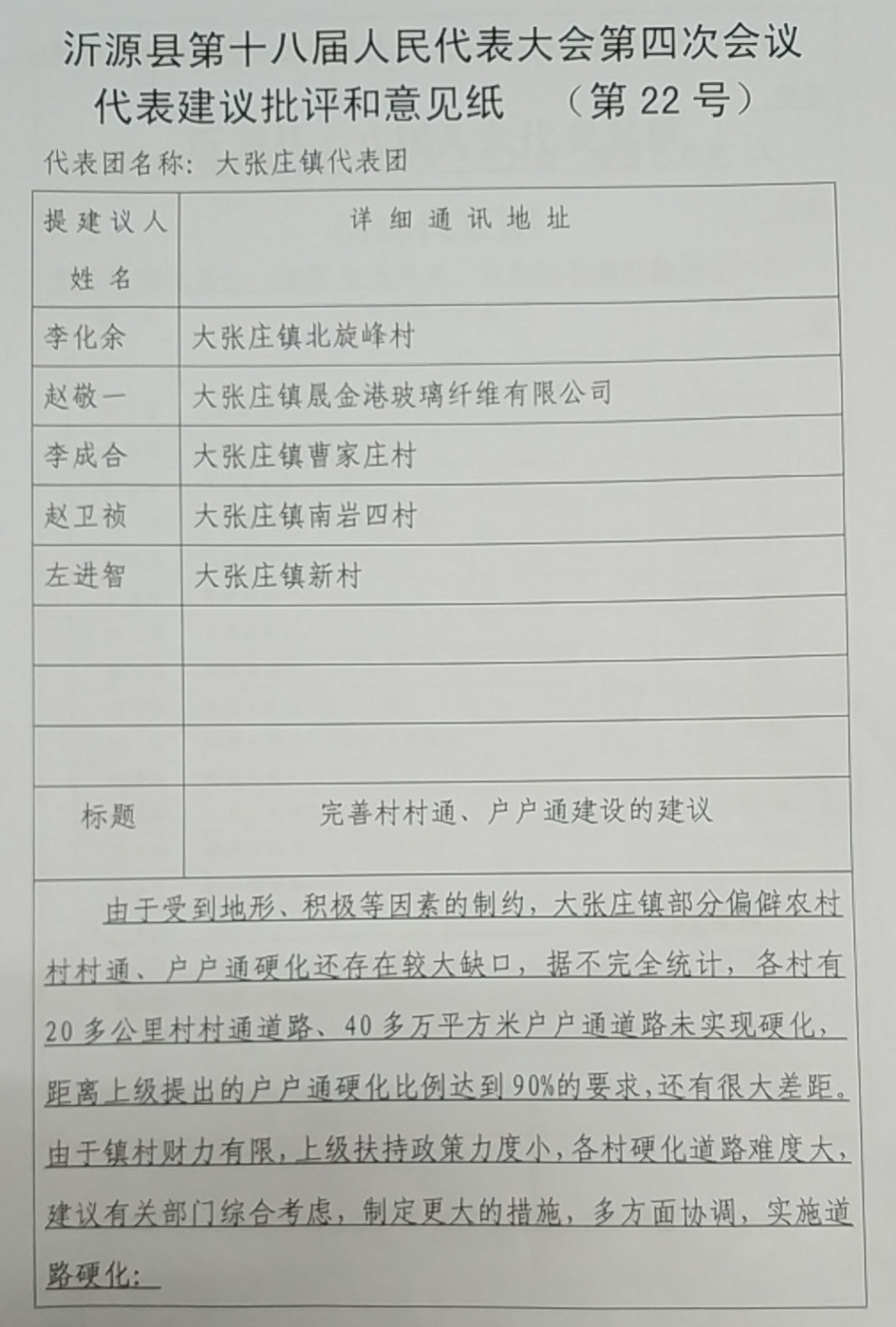 李化余、赵敬一、李成合、赵卫祯、左进智代表:
