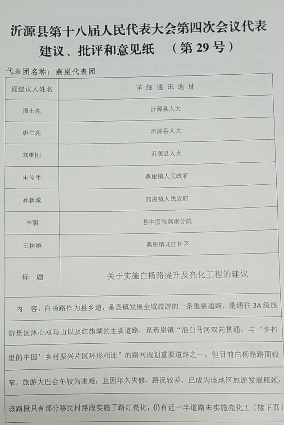 建议人: 周士亮、唐仁亮、刘维刚、宋传伟、孙新城、李丽、王树群