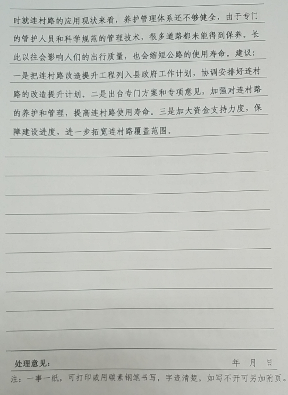 您提出的关于连村路建设的建议收悉。现答复如下: