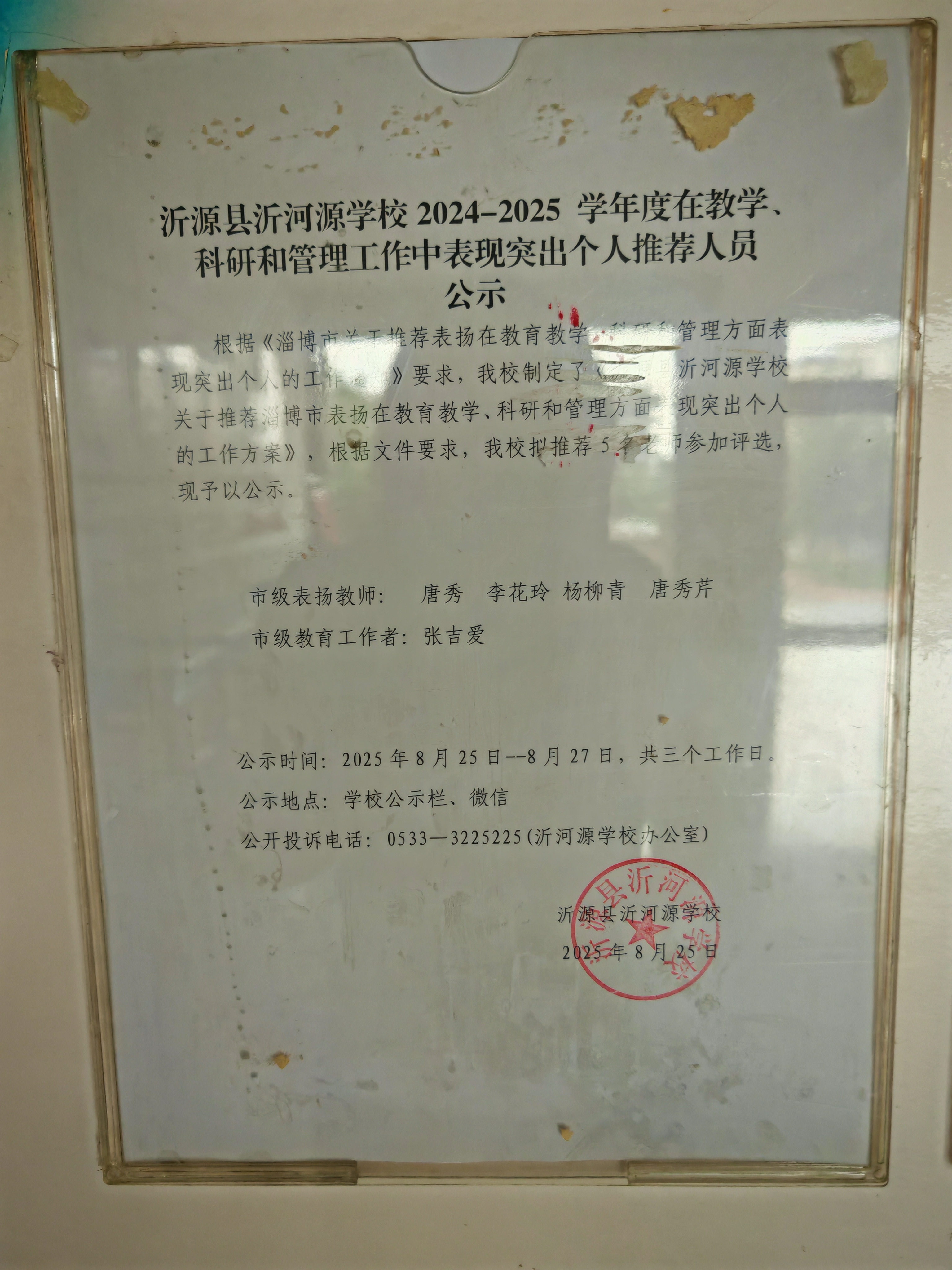 沂河源学校2024-2025学年度在教学、科研和管理工作中表现突出个人推荐人员公示