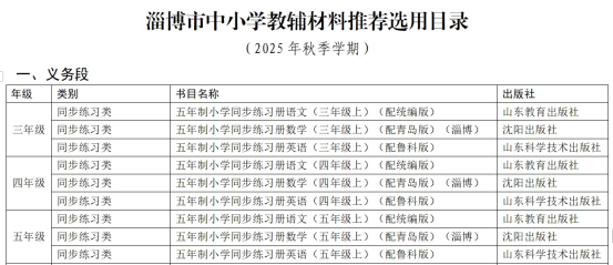 3.学校严格依据 2025 年《淄博市中小学教材教辅推荐选用目录》中所列书目,坚决执行“一科一辅、自愿购买”原则,学校任何教师不得私自向学生额外推荐或指定其他教辅材料或学习材料等,不得以在指定的教辅材料上布置作业为名,变相要求学生购买其它教辅材料。