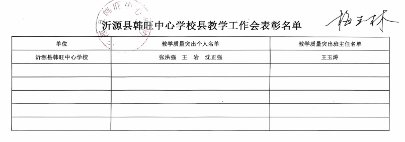 沂源县韩旺中心学校县教学工作会表彰名单