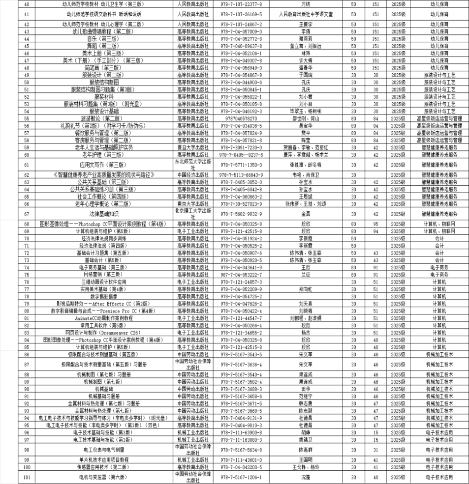 淄博电子工程学校2025年秋季学期教材、教辅征订明细