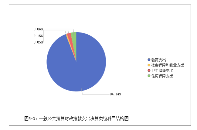 2023年度一般公共预算财政拨款支出1,560.57万元,主要用于以下方面:教育支出(类)支出1,469.1万元,占94.14%;社会保障和就业支出(类)支出10.14万元,占0.65%;卫生健康支出(类)支出33.62万元,占2.15%;住房保障支出(类)支出47.71万元,占3.06%。
