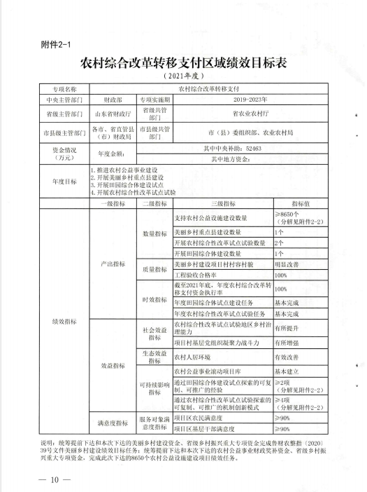 关于下达2021年乡村振兴重大专项资金 (中央财政补助)预算指标的通知(美丽乡村建设资金)