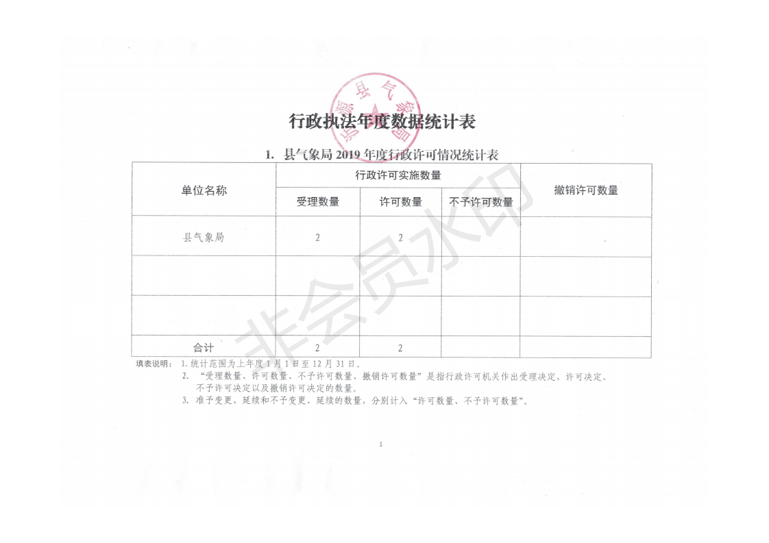 标题: 县气象局2019年度行政执法数据统计表