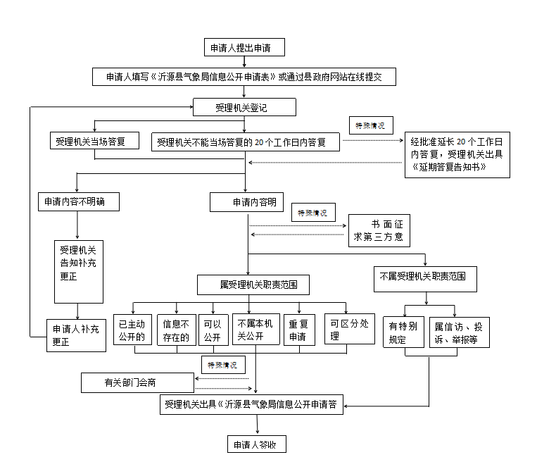 本机关办理申请人政府信息公开申请时,能够当场答复的,将当场答复;不能当场答复的,自收到申请之日起20个工作日内予以答复;确需延长答复期限的,延长答复时间不超过20个工作日,并告知申请人。政府信息涉及第三方权益的,应当征求第三方的意见,征求第三方意见所需时间不计算在期限内。