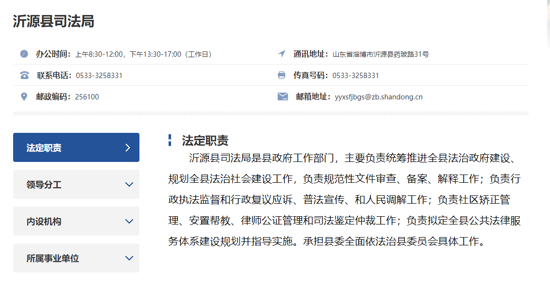 沂源县司法局政府信息公开申请受理机构为:办公室