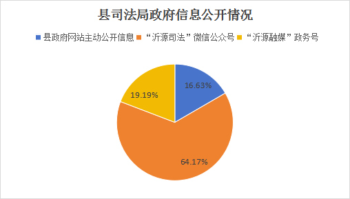 全年通过县政府网站主动公开信息260条,其中机构职能1条,权责清单1条,政策法规类7条,重大决策预公开1条,规划计划类2条,建议提案类2条,财政信息4条,双随机、一公开5条,管理和服务类14条,政务公开组织领导类2条,信息公开指南1条,信息公开年度报告1条,政务公开工作推进1条,主动公开基本目录1条,法治建设专栏205条,政府开放日活动1条,政务公开在行动11条。依托沂源司法微信公众号发布图文、短视频等信息1000条,沂源融媒政务号发布300条,实现权威信息精准直达。