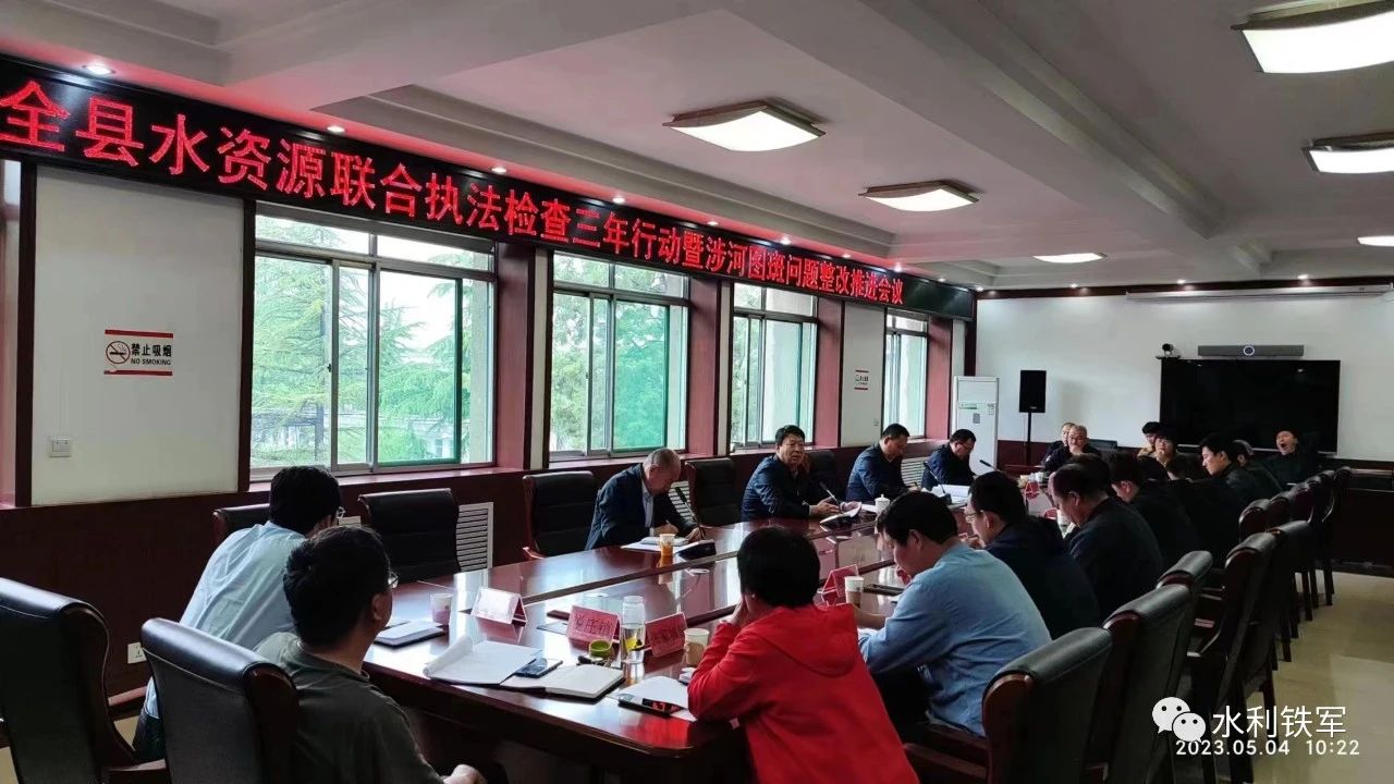 54日,全县水资源联合执法检查三年行动及涉河图斑问题召开整改推进会,安排部署下一阶段执法检查工作,确保水资源联合执法三年行动及涉河图斑问题整改工作开好局。沂源县政府副县长赵强同志出席会议并讲话,县水利局党组书记、局长陈立兵同志主持会议并讲话。