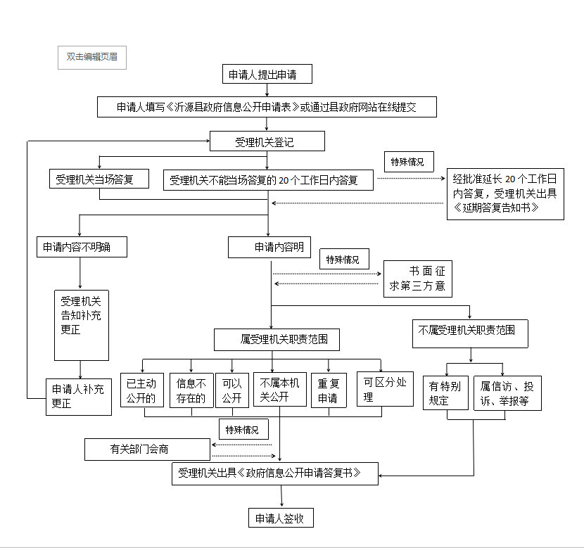 本机关办理申请人政府信息公开申请时,能够当场答复的,将当场答复;不能当场答复的,自收到申请之日起20个工作日内予以答复;确需延长答复期限的,延长答复时间不超过20个工作日,并告知申请人。政府信息涉及第三方权益的,应当征求第三方的意见,征求第三方意见所需时间不计算在期限内。