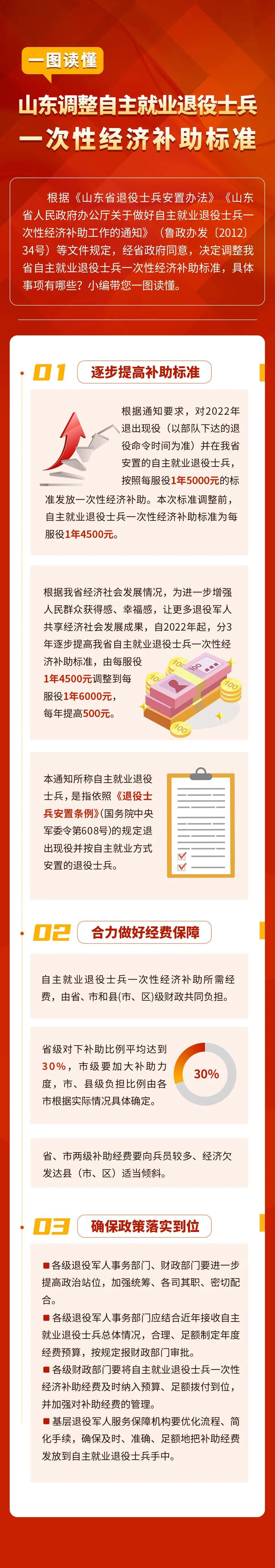 标题: 【一图读懂】山东提高自主就业退役士兵一次性经济补助标准