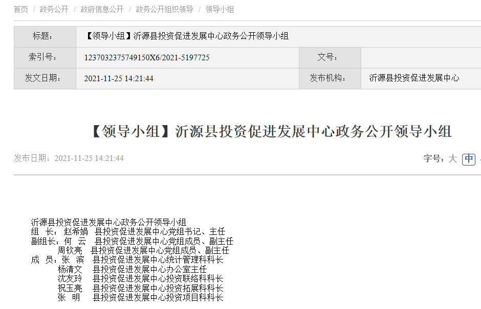 沂源县投资促进发展中心信息公开工作主管部门为:办公室