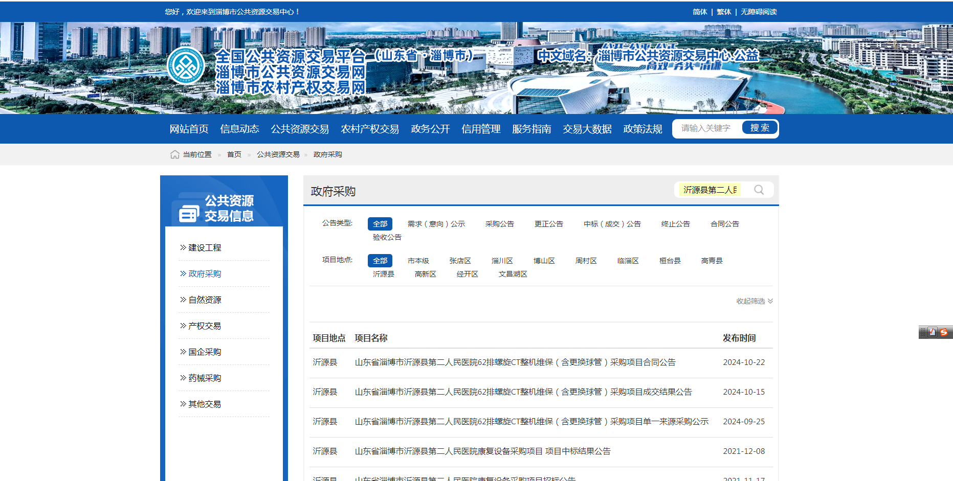 沂源县第二人民医院招标采购信息可从中国山东政府采购网搜索查询: