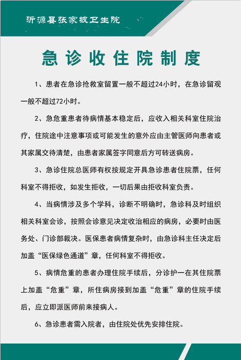 | 标题: | 沂源县张家坡卫生院住院须知及流程等信息 | ||