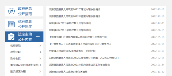 2022年,沂源县西里镇人民政府按照《2022年沂源县政务公开工作方案》(源政办字〔2022〕20号)相关要求,明确政务公开工作制度,不断提高政务公开水平,为人民群众提供多种信息公开渠道。
