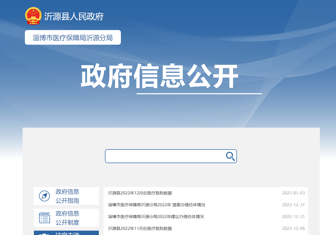 二是依据信息公开的有关要求在政府门户网站政府公开信息栏目及时更新各类重点领域信息,全力推进淄博市医疗保障局沂源分局政府公开信息的公开。