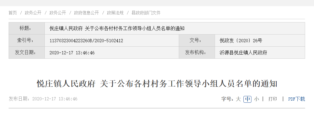 4、同时在沂源县悦庄镇人民政府一楼设置政务公开专区。(沂源县中心街1号,办公时间:工作日8:20-11:50  13:30-17:00,联系电话:3420031)