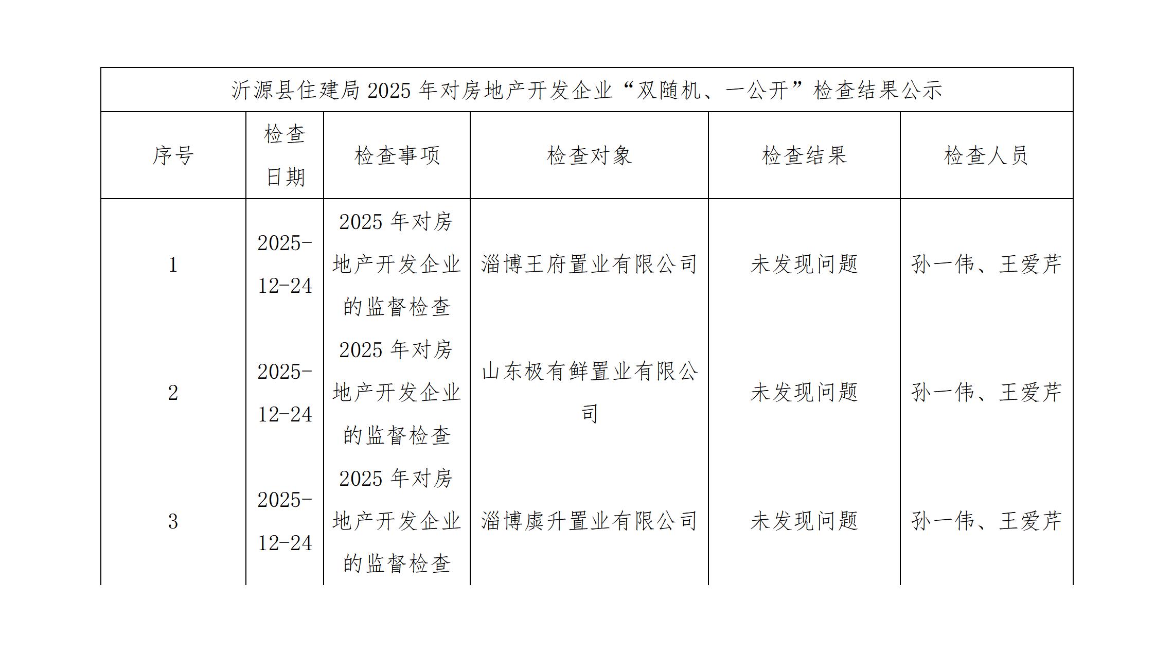 沂源县住建局2025年第四季度行政执法情况检查结果公开