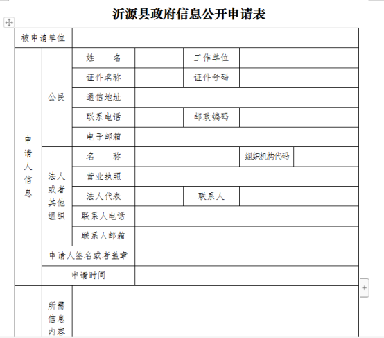附件1.沂源县政府信息公开申请表