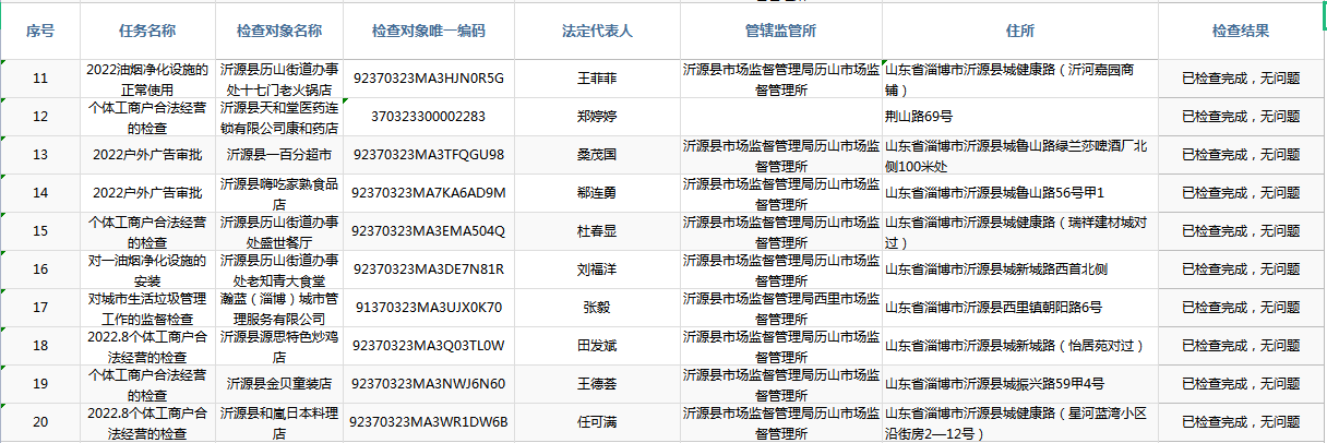沂源县综合行政执法局2022年“双随机一公开”检查结果公示(二)