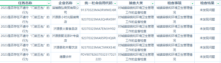沂源县综合行政执法局2023年“双随机一公开”检查结果公示(六)