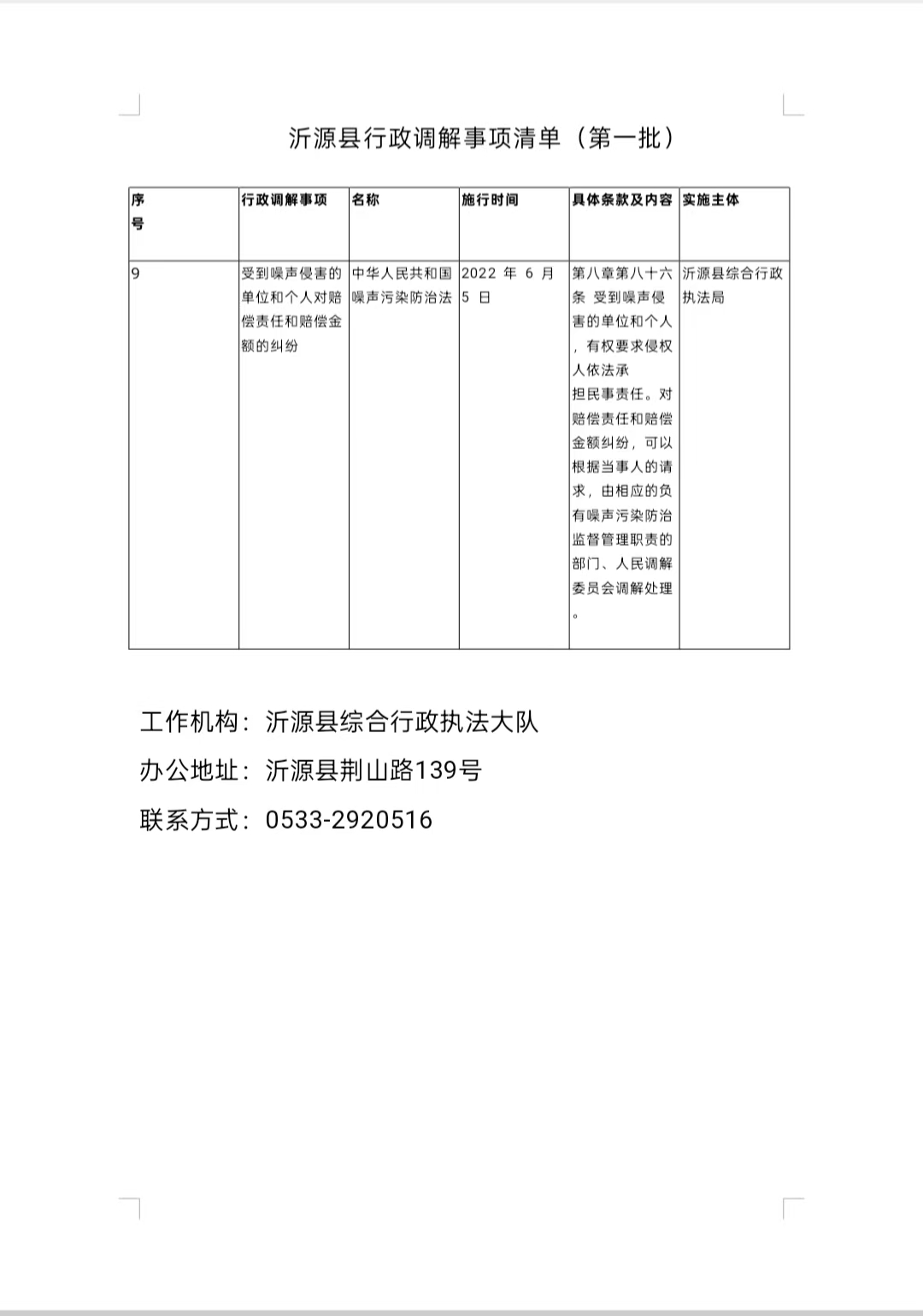 标题: 【行政调解事项清单】沂源县综合行政执法局行政调解事项清单