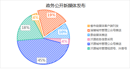 2024年,通过各类新媒体公开信息323条。其中,大众日报、山东商报·速豹新闻、博览新闻、海报新闻、淄博学习平台等省市级媒体客户端刊发信息12篇,在淄博城市管理公众号推送信息63篇,在沂源融媒、掌上沂源等县级媒体推送视频、信息32篇,沂源政务信息采用信息12篇,在沂源城市管理公众号推送信息144篇,视频号、抖音号推送视频60期。
