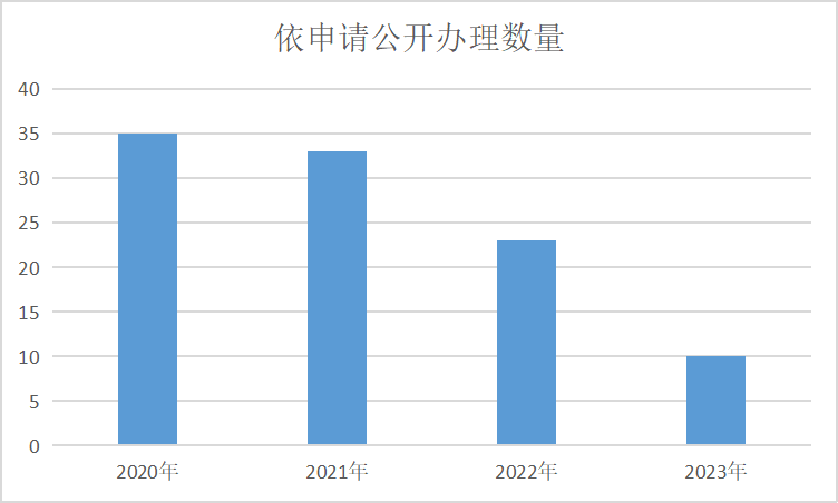 (二)依申请公开工作方面。严格依照《中华人民共和国政府信息公开条例》相关要求,规范依申请公开办理流程,高质量完成政府信息公开申请答复工作。2025年,受理依申请公开22件,已完成答复21个,1个流转到下一年答复,数量相比去年减少4件。