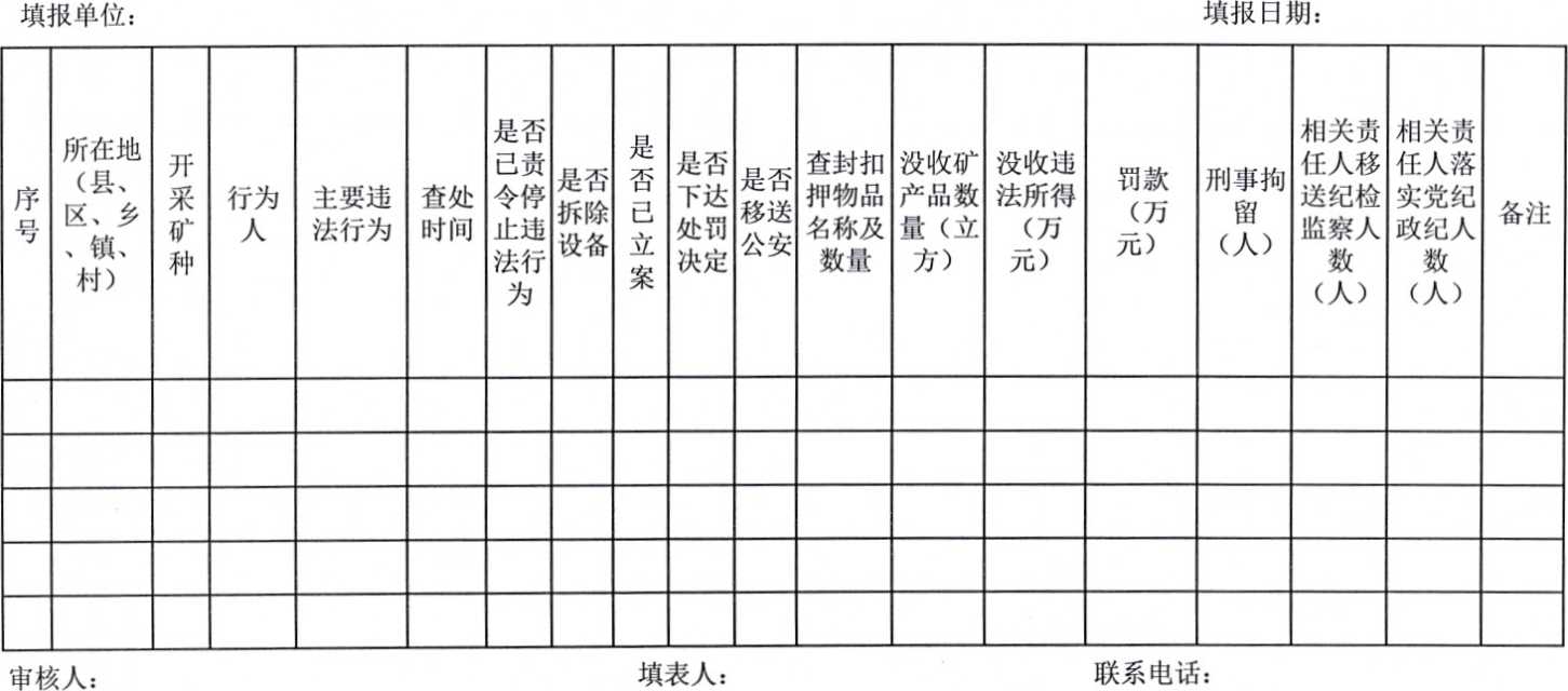 此次专项整治重点:一是无采矿许可证非法开采矿产资源行为;二是不按矿山开采利用方案乱采滥挖矿产资源行为;三是越界开采造成资源破坏的行为;四是强行进入他人矿区非法开采矿产资源行为;五是无证勘查和以采代探行为;六是以工矿废弃地复垦、生态环境恢复治理、矿山修复、土地整理等工程名义非法开采行为。